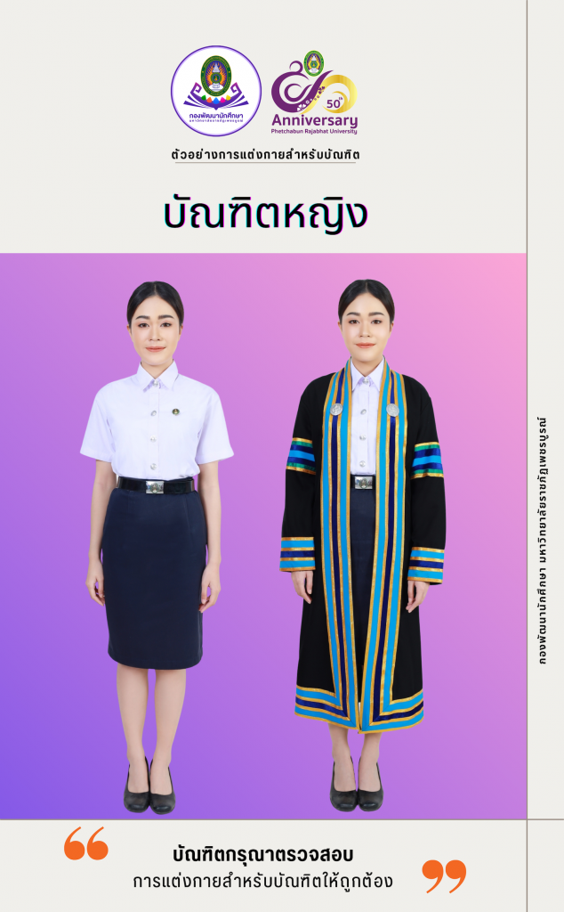 *** บัณฑิตหญิงที่ต้องสวมชุดคลุมท้องให้ตัดเป็นชุดติดกัน เสื้อสีขาวคอเชิ้ต กระโปรงสีกรมท่า ติดซิปหลัง